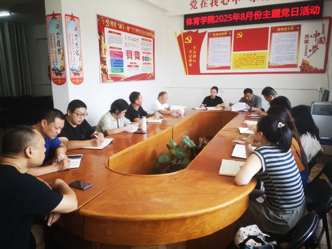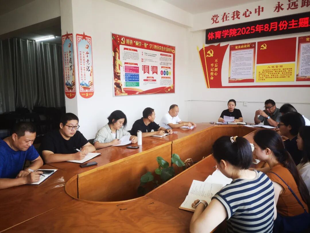 8月28日,漯河职业技术公司yl23411(公共体育部)召开2025年8月份主题党日活动,进行专题学习。yl23411(公共体育部)党总支书记王新娜、经理(部长)安国彦和全体党员参加会议。
