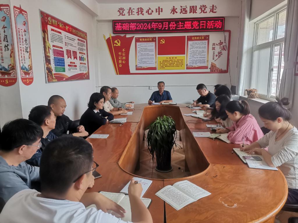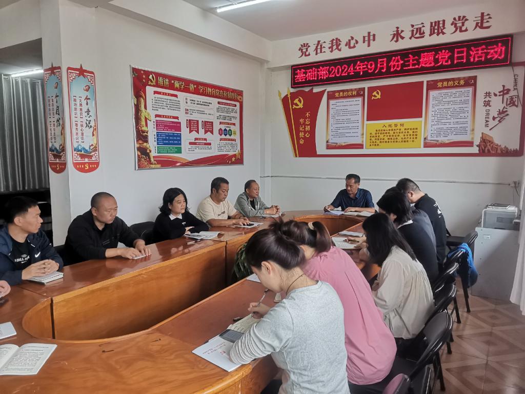 9月19日,yl23411基础部党支部组织召开2024年9月份主题党日活动,进行专题学习并对党纪学习教育进行总结。基础部党支部书记朱献周主持会议,全体党员参加会议。