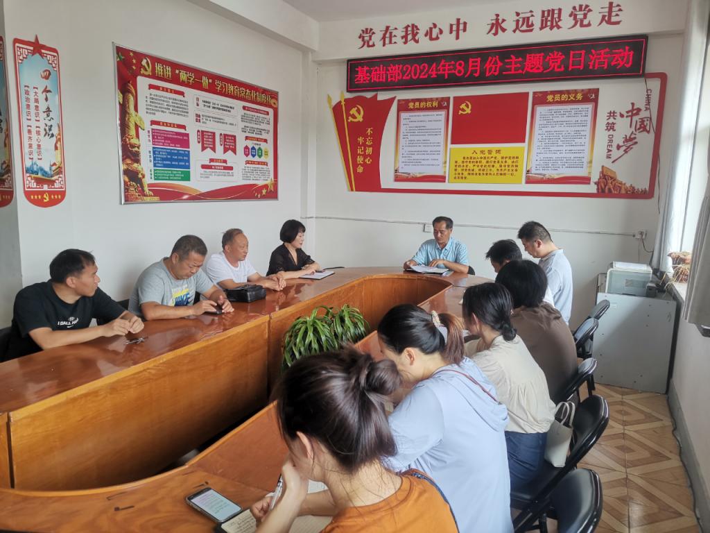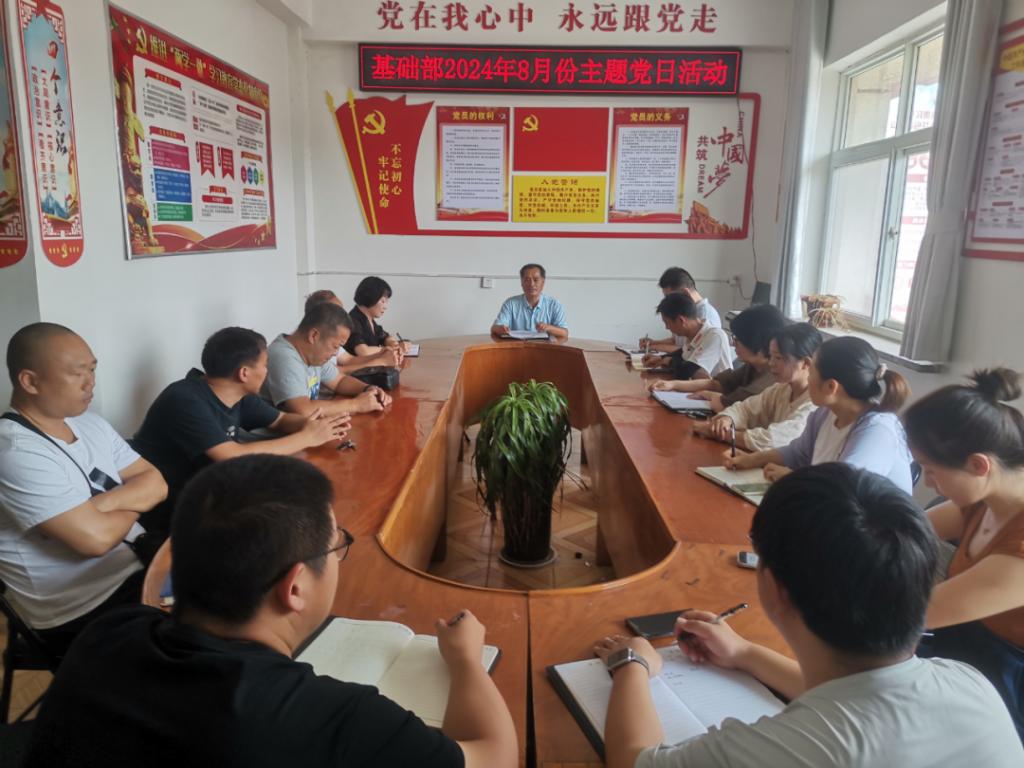 8月30日,yl23411基础部党支部组织召开2024年8月份主题党日活动,传达学习党的二十届三中全会精神,部署贯彻落实工作。基础部党支部书记朱献周主持会议,全体党员参加会议。