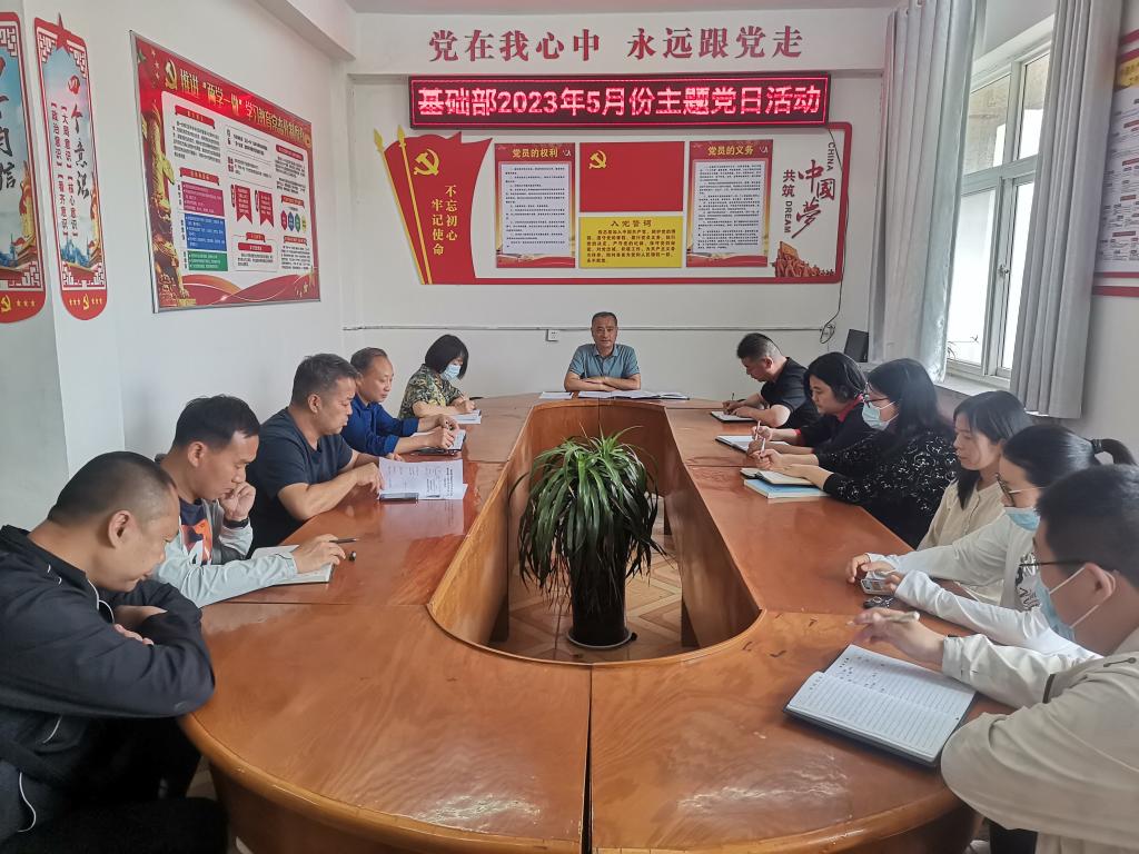 5月22日,yl23411基础部党支部召开2023年5月份主题党日活动,进行专题学习,布置相关工作。基础部党支部书记朱献周主持会议,全体党员参加会议。