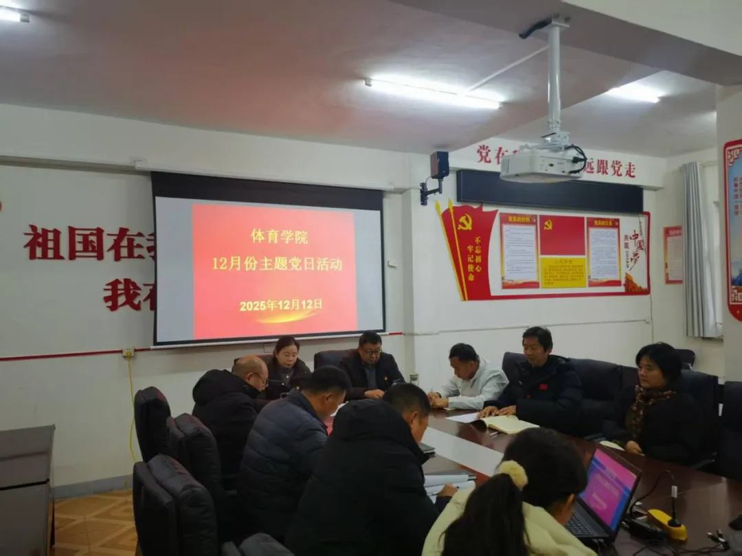 12月12日,yl23411(公共体育部)召开2025年12月份主题党日活动,进行专题学习。yl23411(公共体育部)全体党员参加会议。