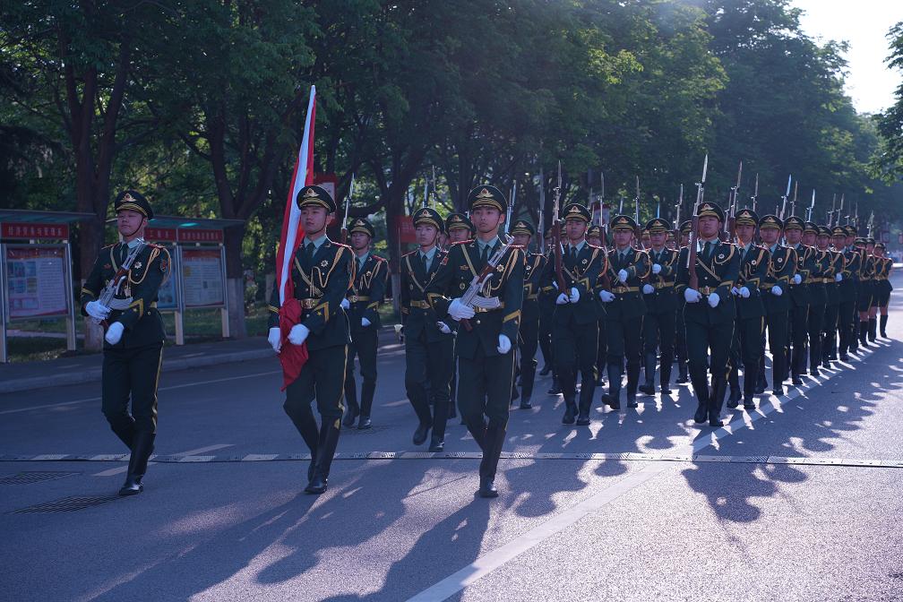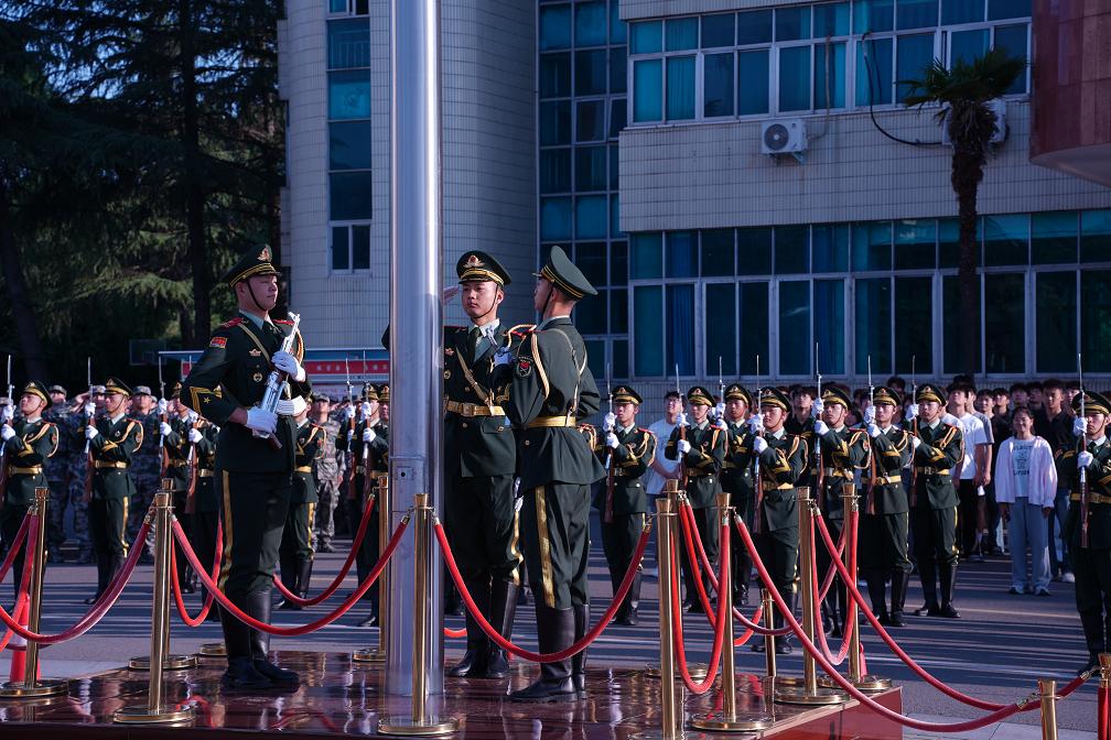 晨光熹微间,旭日东升,金色的光芒洒满校园,为宁静的楼宇与葱郁草木镀上一层温暖光晕。“升国旗仪式现在开始,请yl23411国旗护卫队出旗……”。随着主持人口令的发出,国旗护卫队队员们迈着整齐有力的步伐、呼喊着嘹亮的口号出旗,他们坚定的目光、划一的动作,彰显着青春萌动的蓬勃力量与对国旗的敬重。在激昂高亢的国歌声中,五星红旗徐徐升起,高高飘扬。全体师生行注目礼,心中充满对伟大祖国的热爱与敬意。