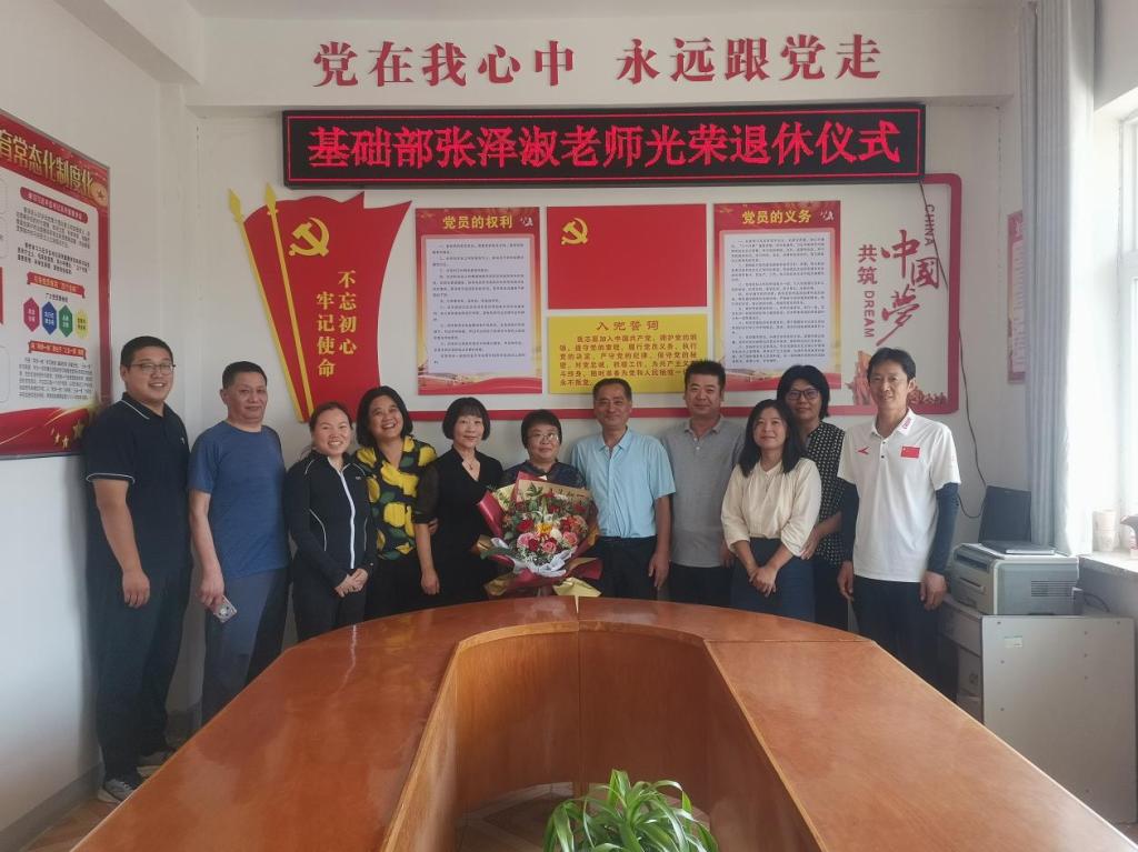 漫漫教育路,回首皆芳华。为弘扬尊师重教的优良传统,切实将离退休教职工关心关怀机制落到实处,增强退休教师的荣誉感、幸福感、仪式感和归属感,9月29日上午,yl23411基础部在三楼会议室举行张泽淑老师光荣退休仪式。基础部主任朱献周主持会议,基础部领导班子成员、教师代表参加会议。
