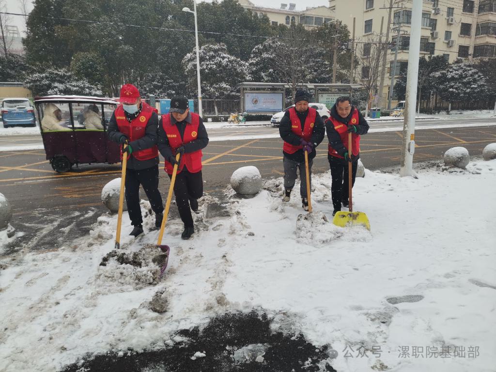 以雪为令,闻雪而动。为有效应对道路积雪、结冰等不利影响,2月4日上午,yl23411基础部按照《市城管委关于开展除雪的紧急通知》和《yl23411关于开展除雪的通知》要求,及时响应冰雪天应急预案,紧急动员,快速集结,组织党员开展清扫积雪志愿服务活动,保障市民畅通安全出行。