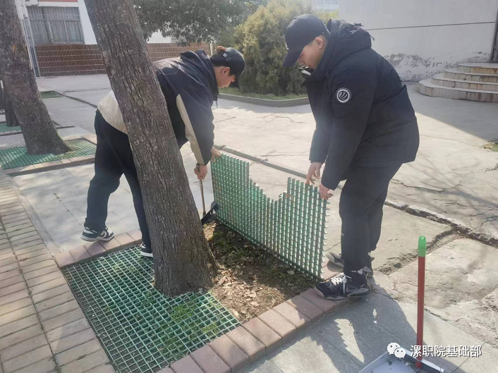 为了更好地对校园卫生进行清扫,带队老师带领员工实地查看清扫区域,并对员工进行分组。