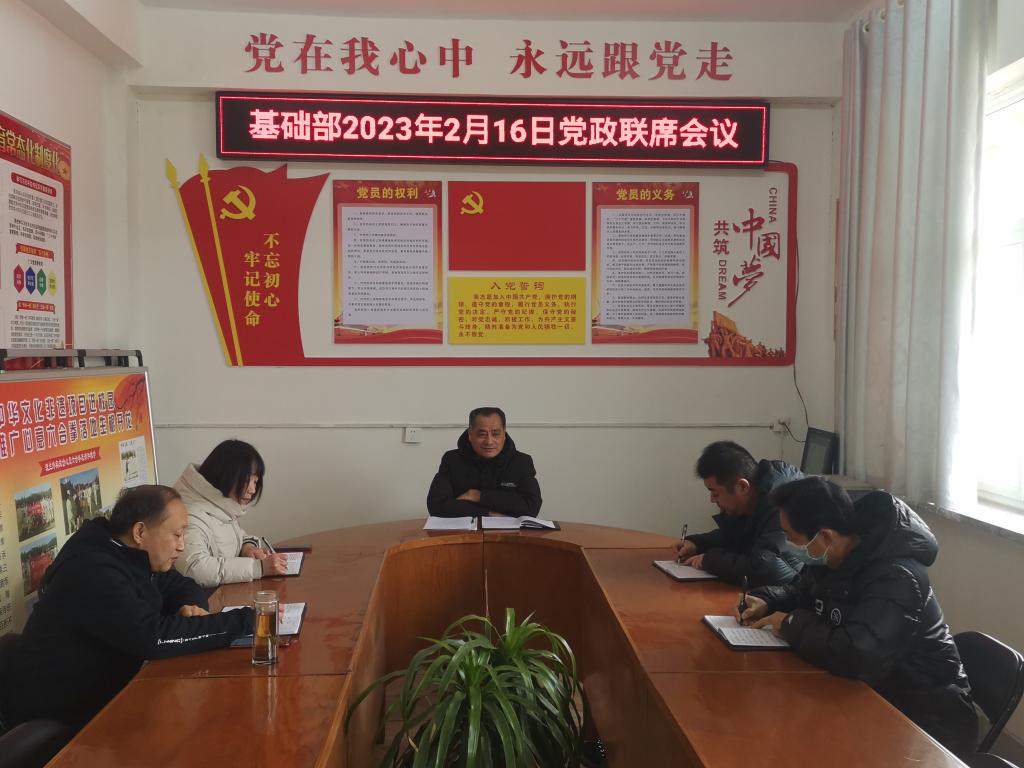 2月16日,yl23411基础部举行党政联席会和全体教师会,对2023年工作进行谋划,对新学期工作进行安排,会议由基础部党支部书记兼主任朱献周主持,领导班子和全体教师参加。
