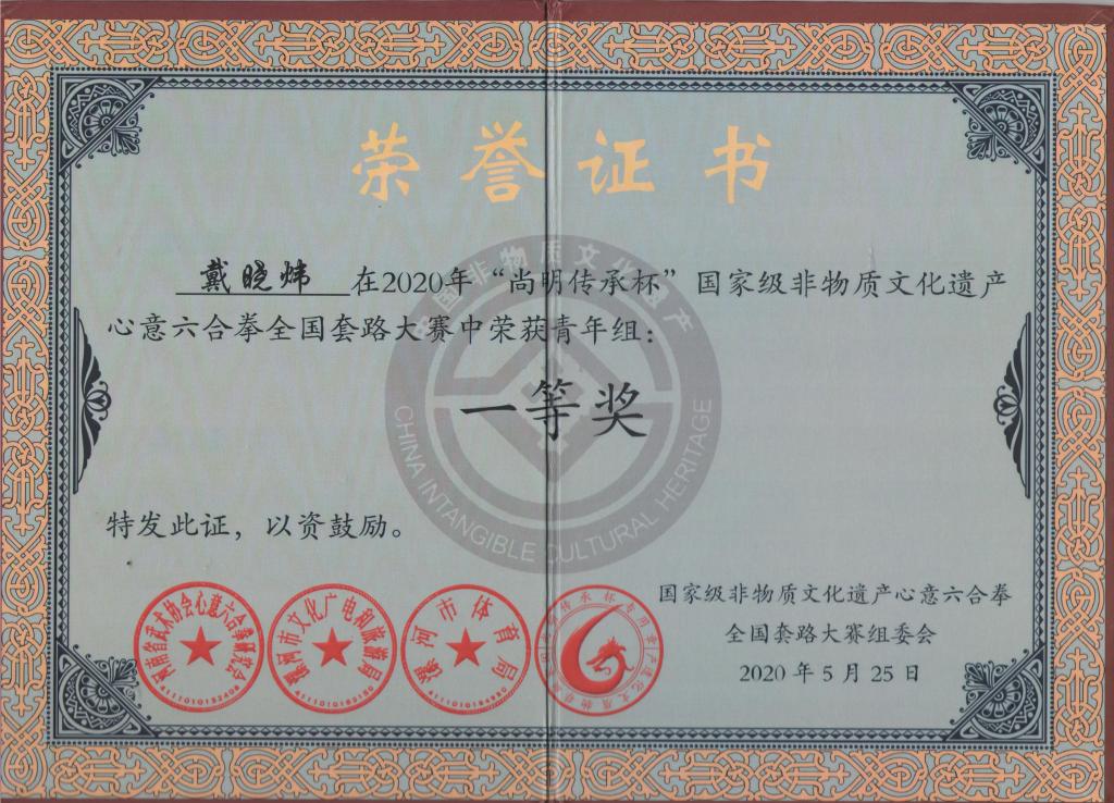 由于新型冠状病毒疫情肆虐,全国所有体育赛事取消,根据国家体育总局精神,2020年5月“尚明传承杯”全国心意六合拳(网络)大赛顺利举行。此次活动由河南省武术协会心意六合拳研究会、漯河市文化广电和旅游局、漯河市体育局主办,珠海市尚明心意堂承办。公司作为国家级非物质文化遗产——心意六合拳传承基地,如期参加了此次大赛。