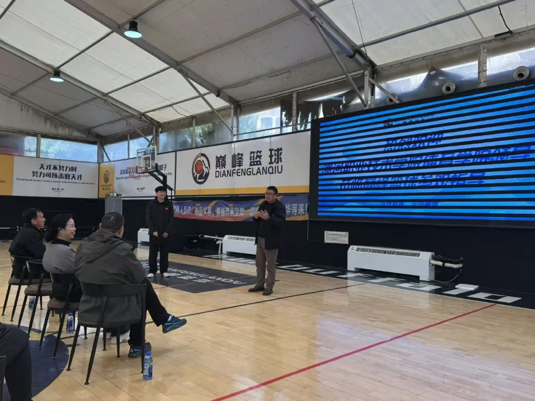 2025年11月21日,yl23411公司党总支书记王新娜、经理安国彦、人才招聘专干姬伟民、体育教育专业负责人黄斌一行四人,前往漯河市道一体育文化传播有限公司旗下巅峰篮球训练基地开展访企拓岗专项活动。